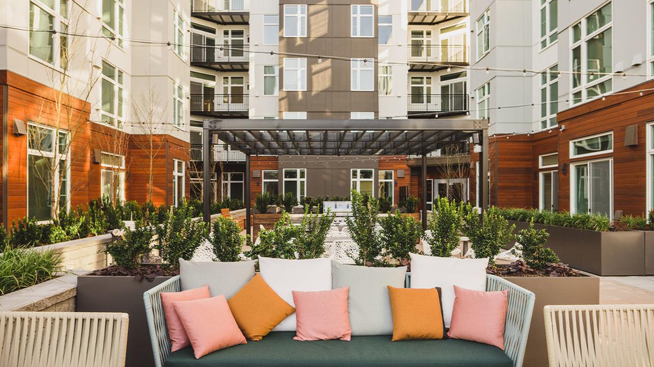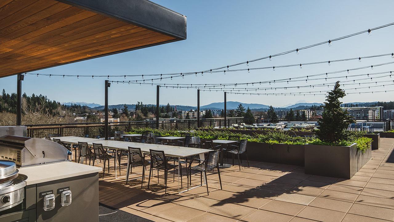 Modera Redmond blends the beauty of nature into its design with distinguishing amenities that include a rooftop deck and sky lounge offering you panoramic views of Redmond (a rare find in the area), along with two outdoor courtyards. With an 83 Walk Score and 89 Bike Score, everything is right at your fingertips.
